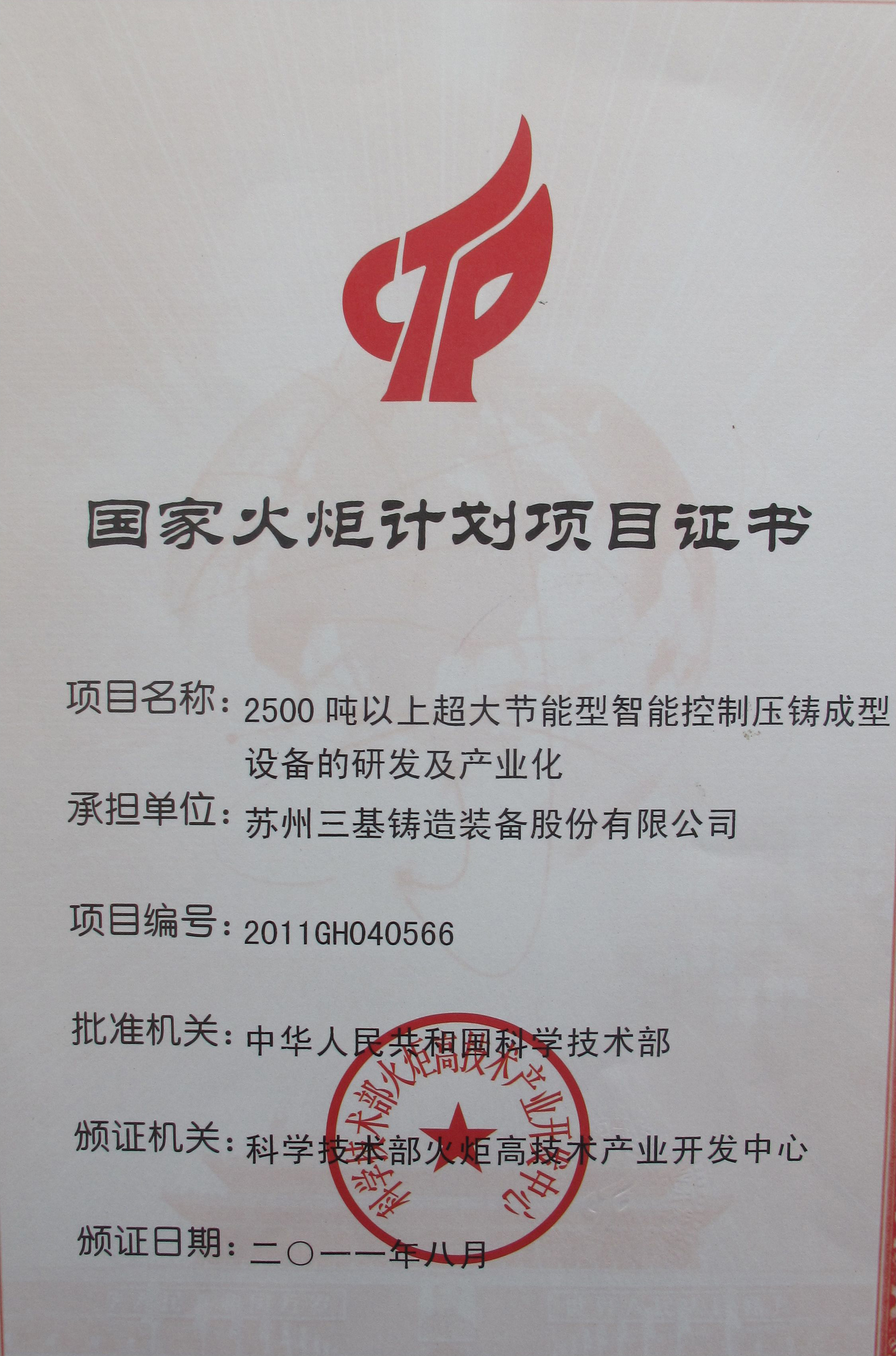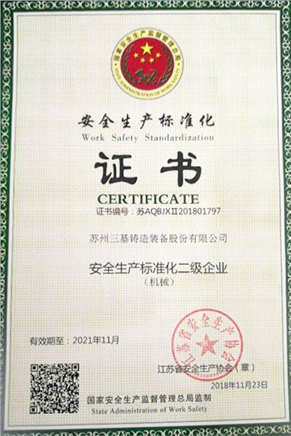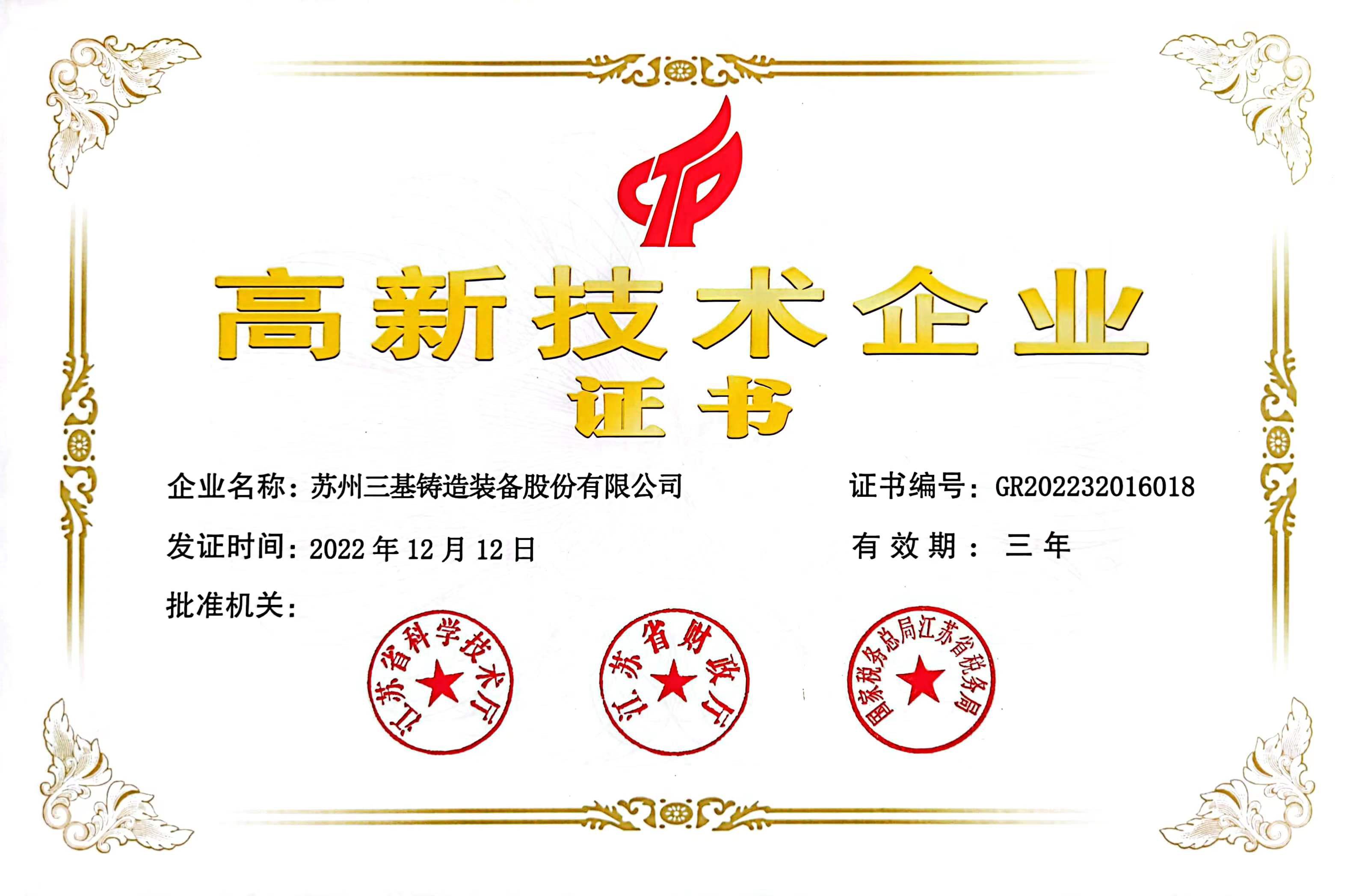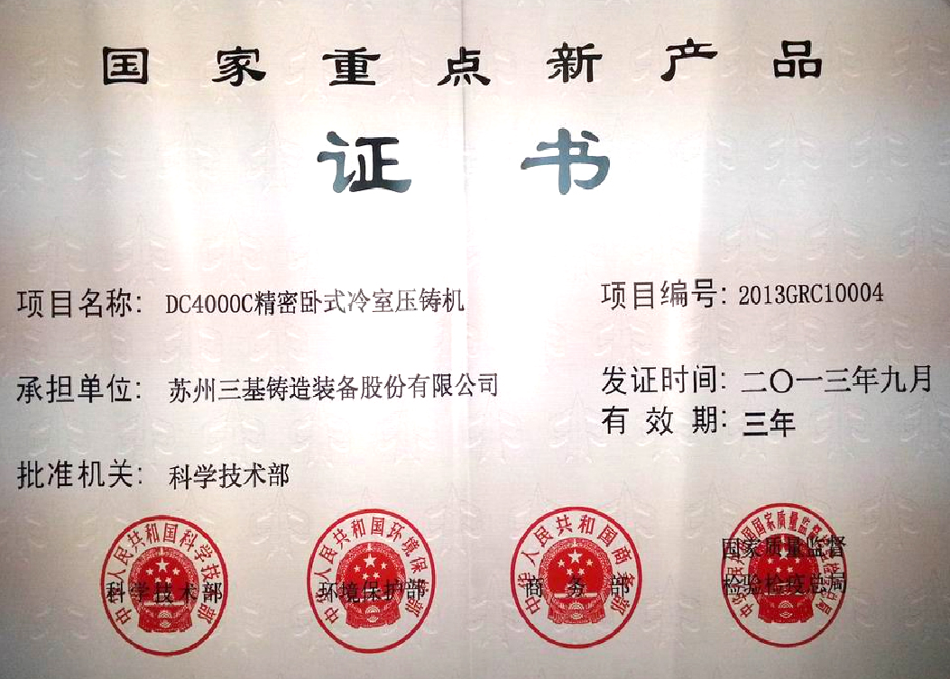 歷程23年,三基鑄造先后獲得了“江蘇省科技進步獎”、“江蘇省機械行業(yè)科技進步”、“蘇州市科技進步獎”、“蘇州市雙杯獎”、“國家重點新產(chǎn)品”、“江蘇省優(yōu)秀新產(chǎn)品”、"江蘇省優(yōu)秀新產(chǎn)品金獎"等榮譽