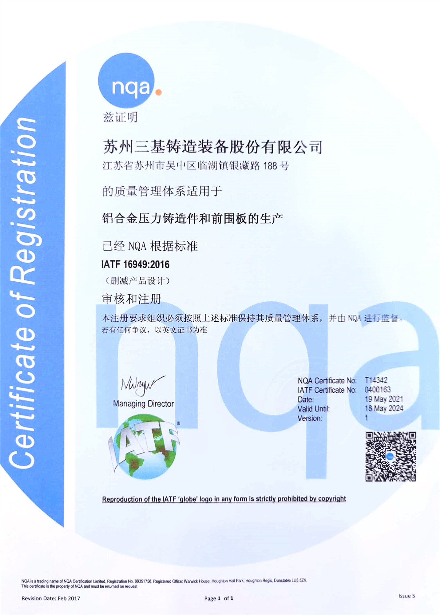 蘇州三基鑄造裝備股份有限公司創(chuàng)始于1996年,是一家專業(yè)從事于壓鑄機、擠壓鑄造機及半固態(tài)成型鑄造機等輕合金鑄造成套裝備研究、開發(fā)、生產(chǎn)和銷售的高新技術(shù)企業(yè)。公司有多項新產(chǎn)品、新技術(shù)達(dá)到了國際先進水平。蘇州三基鑄造裝備股份有限公司擁有上海三基壓鑄機械制造有限公司(全資子公司)、南通合眾輕合金成型科技有限公司(全資子公司)、馬鞍山三基輕合金成型科技有限公司、蘇州三基壓鑄自動化系統(tǒng)有限公司(控股子公司)以及三基工業(yè)(美國)公司等子公司。公司在全國各地10幾個城市設(shè)有銷售辦事處和客戶服務(wù)中心,產(chǎn)品遠(yuǎn)銷全國各地以及國外如美國、俄羅斯、西班牙、印度、印尼、馬來西亞、土耳其、匈牙利、瑞典、巴西等10多個國家。